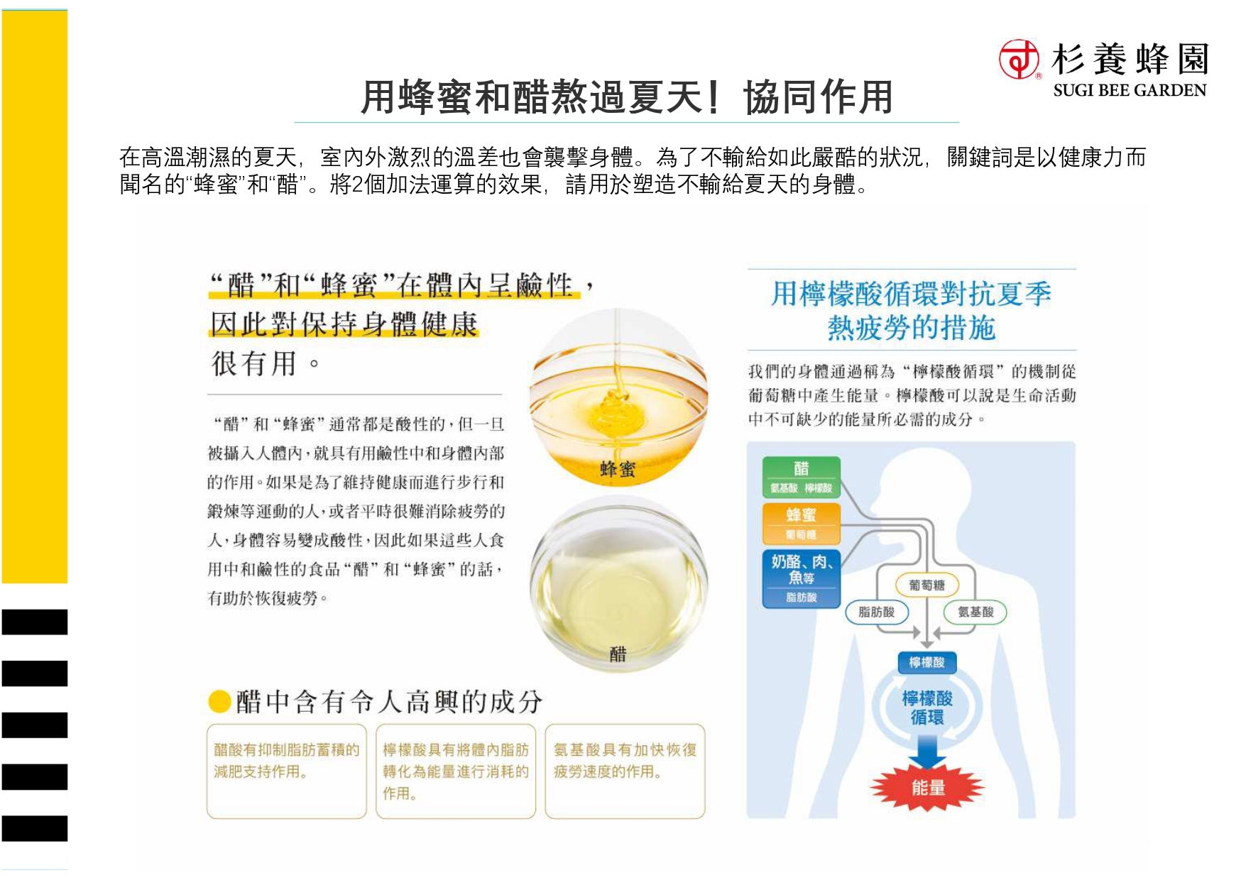 Vinegar effectively replenishes glycogen, one of the body's energy sources, supporting the body in feeling vibrant each day.