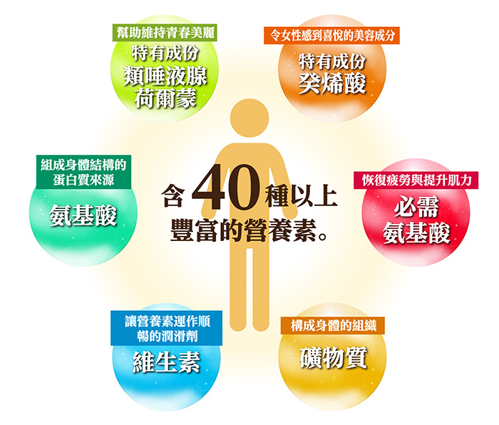 Royal Jelly is produced only for the queen bee and is an extremely rare ingredient.Royal Jelly is a special food that is given only to queen bees and is considered to be a nutritious treasure that is incorporated in a number of health foods.